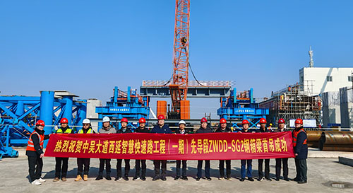 2025年2月13日上午,經(jīng)過2個多小時的吊裝作業(yè),中吳大道西延智慧快速路工程(一期)鋼箱梁首件順利完成吊裝,標志著橋梁鋼結(jié)構(gòu)現(xiàn)場施工拉開了序幕,同時為后續(xù)鋼箱梁的施工奠定了堅實基礎(chǔ)。